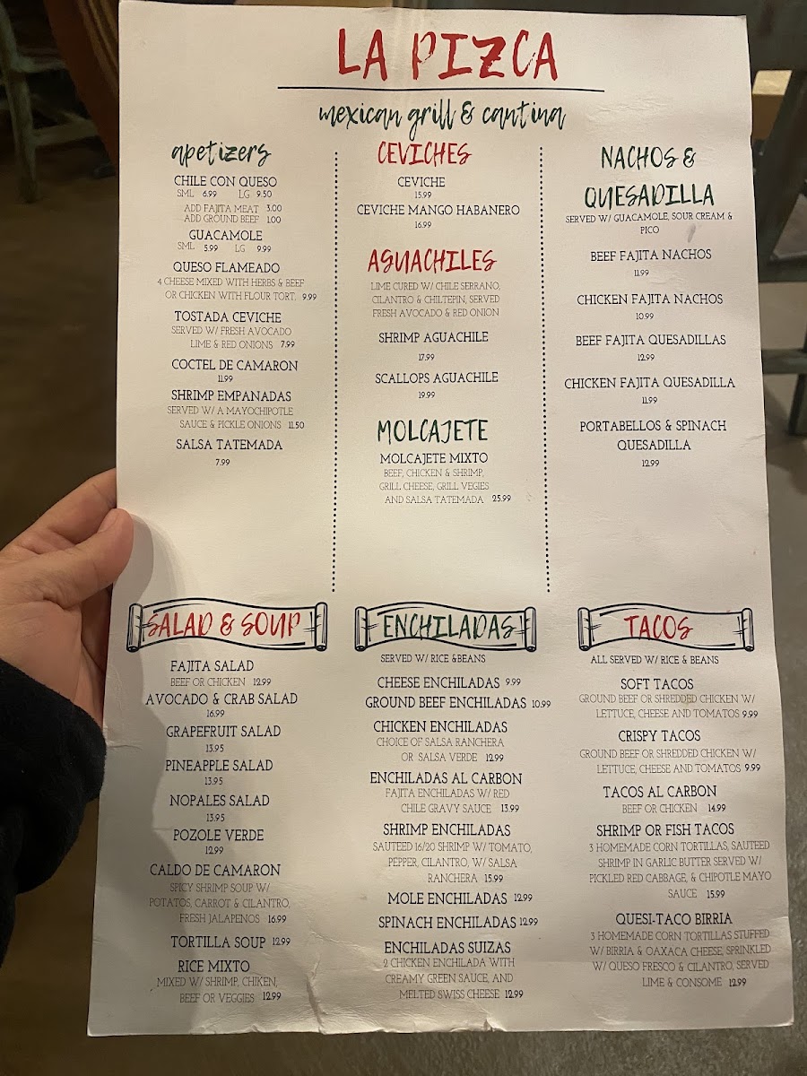 Marinated grilled chicken breast topped with spinach, sauteed shrimp on a garlic butter sauce and with a cascabel sauce, Monterey jack cheese, served with rice and beans.