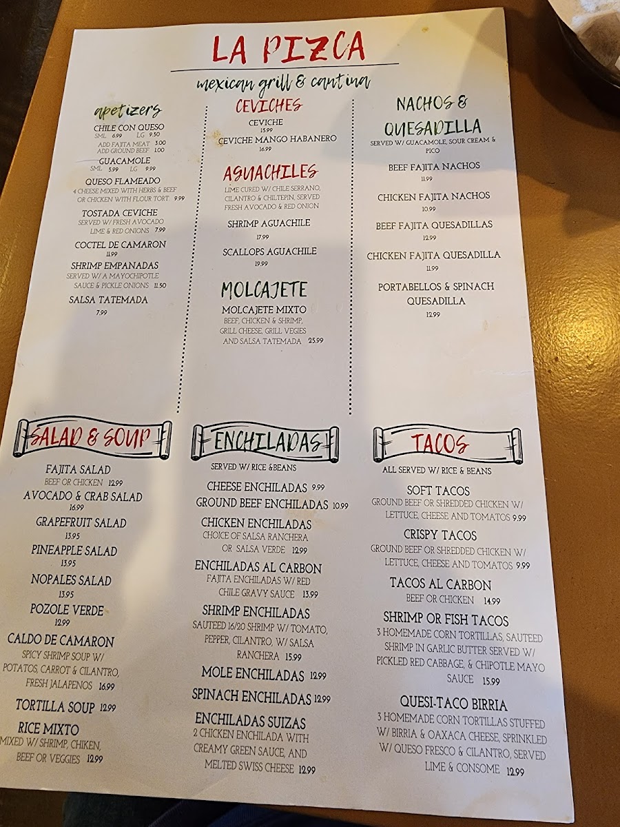 Served with rice and beans (Refried Beans, Charro Beans or Black Beans) guacamole, sour cream, shredded cheese and flour tortillas.