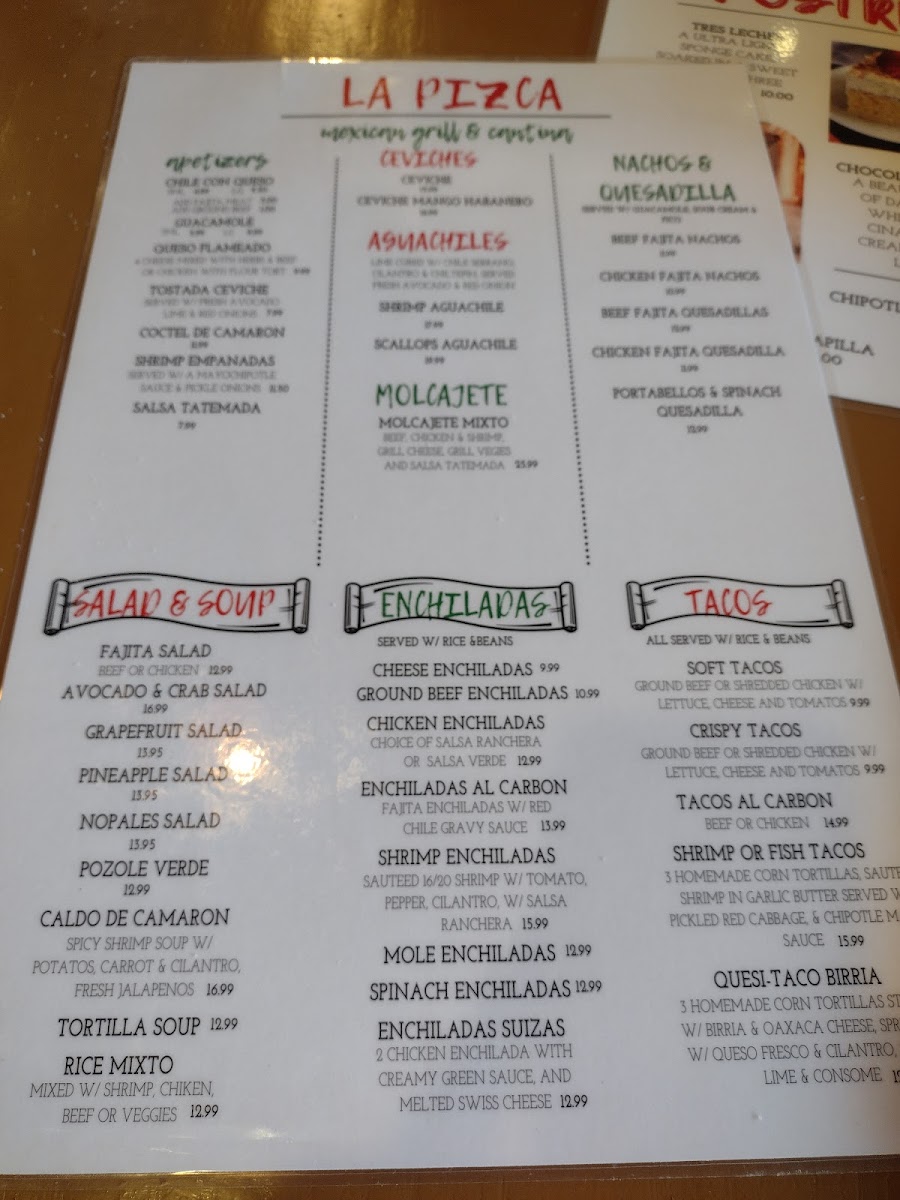 Crispy flat corn tortilla topped with ceviche, avocado and Pico de Gallo.